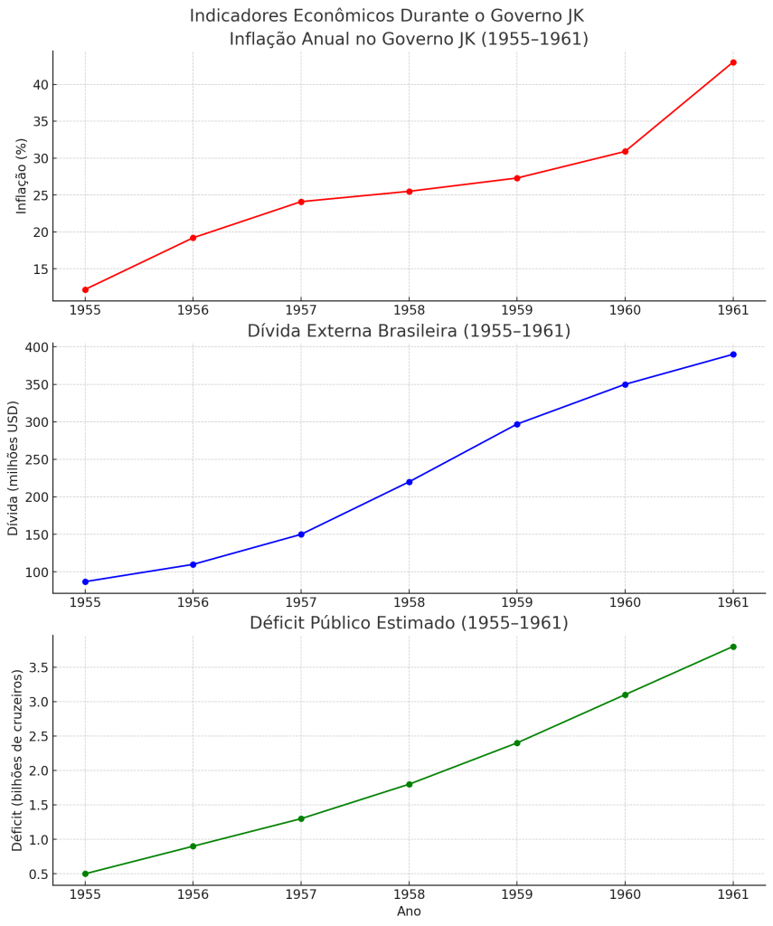 Contudo, o milagre desenvolvimentista teve seu custo. O governo financiou grande parte dos investimentos com emissão de moeda e dívida externa, o que levou ao aumento da inflação e a desequilíbrios fiscais. Ao final de seu mandato, a dívida externa brasileira havia triplicado.
